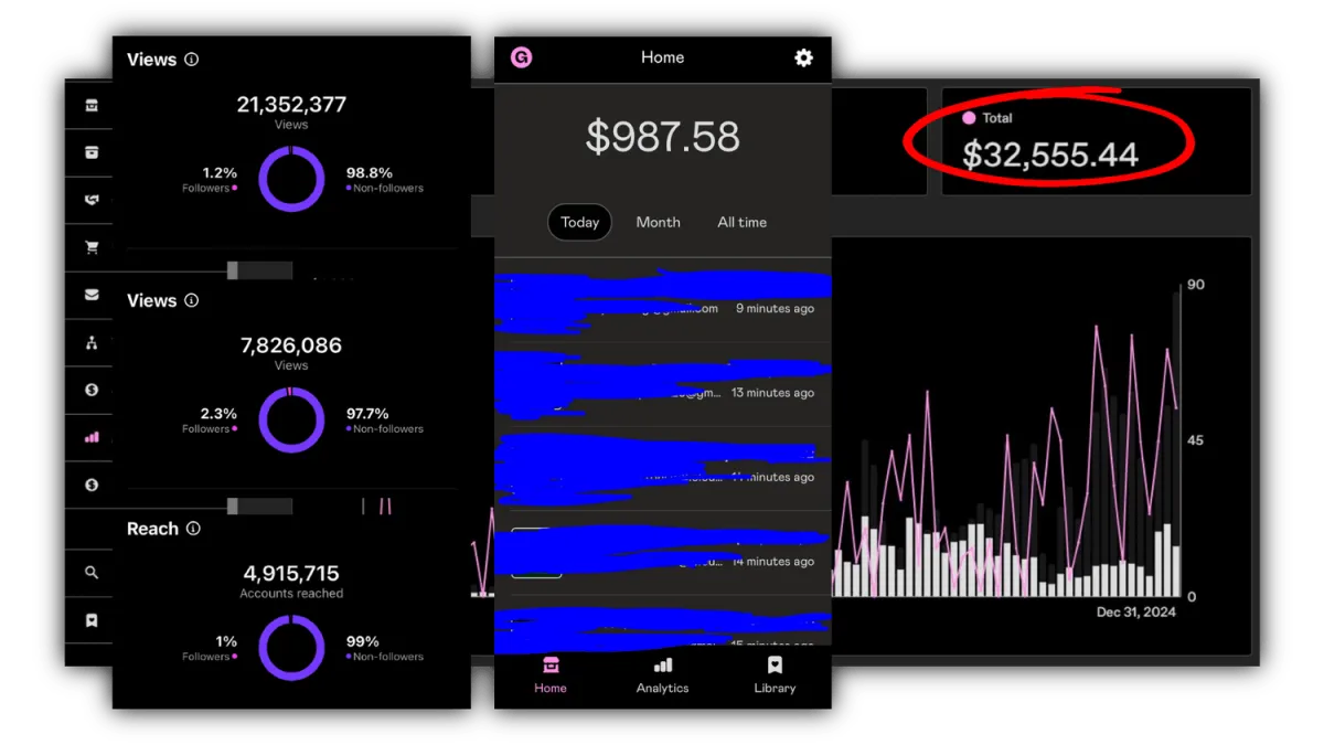“Before WealthGram, my account was stagnant at 3K followers. Four weeks in, I hit 18K and pulled in $1.5K in affiliate commissions all thanks to their proven growth and monetization playbook.”